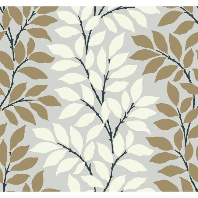 InsideWallpaper Website York BL0320 Metallics Book Leaf/Branch Stripe Wallpaper Wallcovering