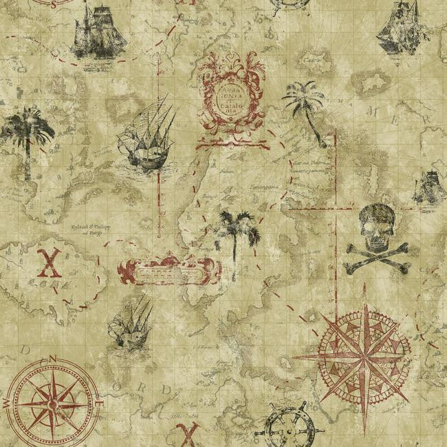 InsideWallpaper Website | York KS2338 Cool Kids Pirate Map Wallpaper Wallcovering |