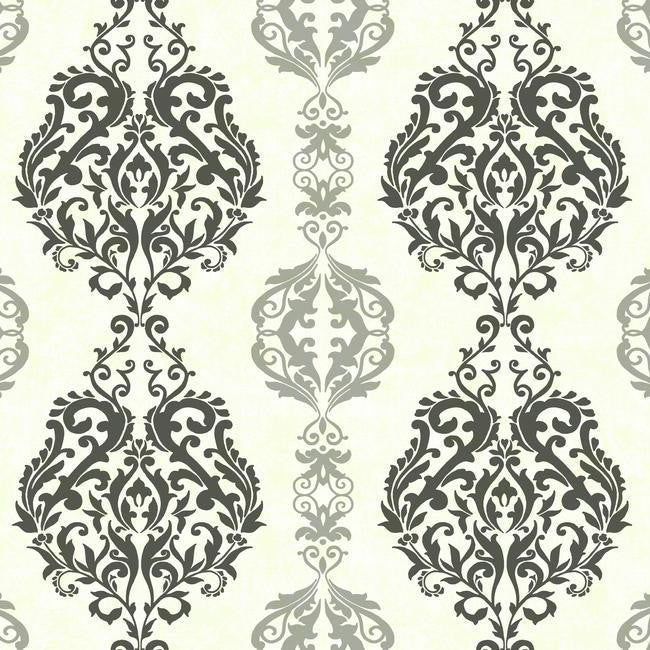 InsideWallpaper Website | York WB5438 Botanical Fantasy Damask Stripe Wallpaper Wallcovering |