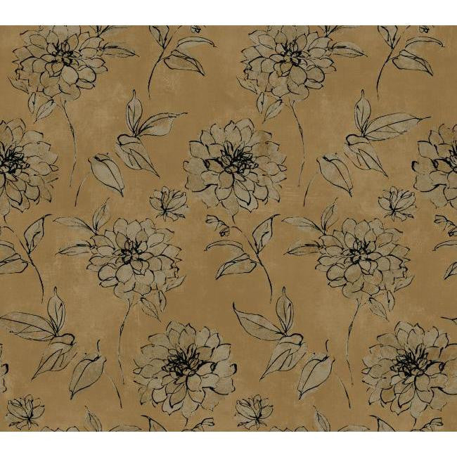 InsideWallpaper Website | York BR6217 Metallics Book Sketched Rose Wallpaper Wallcovering |