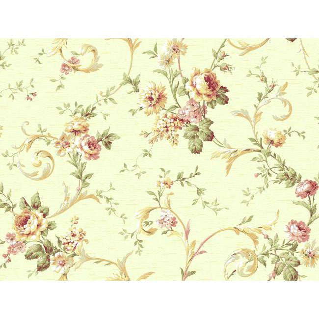 InsideWallpaper Website | York CG5641 Orange & Yellow Book Floral Scroll Trail Wallpaper Wallcovering |