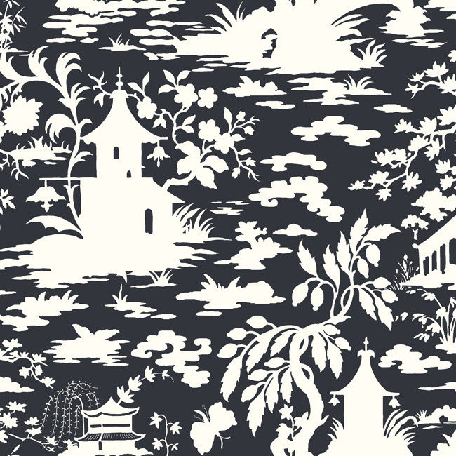 InsideWallpaper Website | York AB2006 Black & White Asian Scenic Wallpaper Wallcovering |
